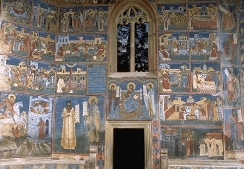 Interior al Bisericii Mânãstirii Voronet.Peretele de sud.